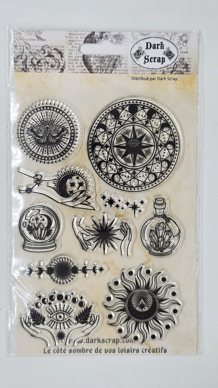 Tampon roue ésotérique, boule de cristal, phase de la lune